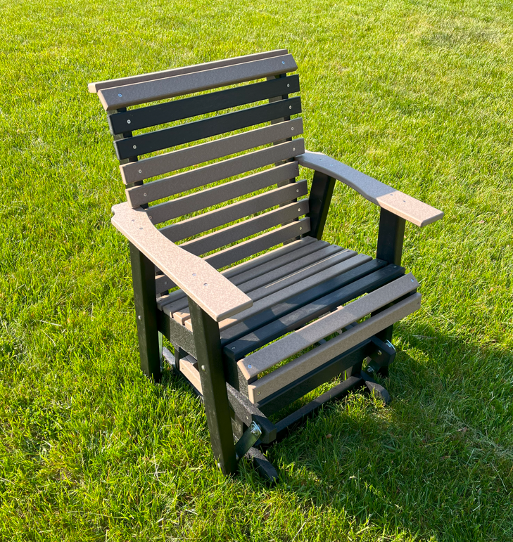 DESCRIPTION: Enjoy the benefit of all-weather, maintenance free poly without the cost. Our Economy line of products (Glider, Chair & Side Table) are a great option for any budget. All items come with a 20-year warranty and are 100% made in the U.S.A.