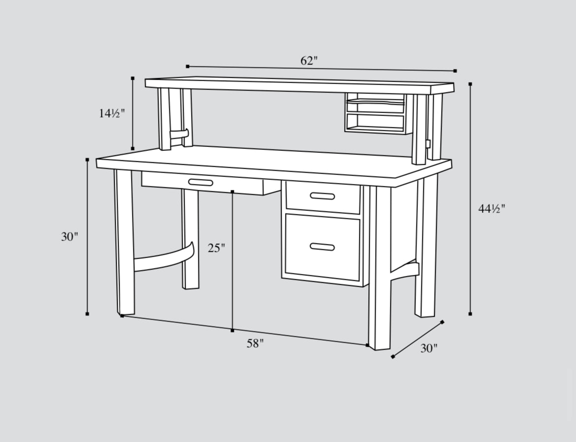 Desk & Organizer: 30″D x 62″W x 44½”H